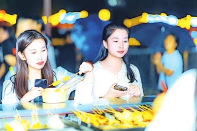 仲夏音乐会不仅是一场视听盛宴,更成为拉动县城夜经济的“新引擎”。沿着环湖路,穿过上寺街,襄韵坊市民广场内,特色小吃、游玩项目、文艺演出让人目不暇接。这里升腾的不仅是“烟火气”,更是人们对美好生活的向往与追求,蕴含着无限的生机与活力。商户葛乃如说:“当初看到招商消息,就和老公租下这个摊位。现在生意特别火,我们特别有干劲!”