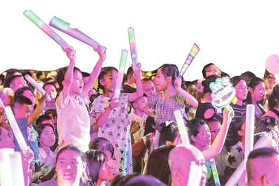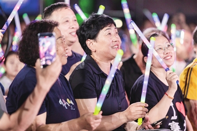 “台下的朋友,打开手机闪光灯!”夜间,随着歌手的热情互动,千余名观众激情高涨,合唱声回荡在东湖湖畔。从《着魔》的摇滚激情到《丁香花》的怀旧柔情,音乐会既有专业歌手的倾情献艺,也有普通市民的登台献唱。参演者张壮壮兴奋地说:“看到台下观众跟着节奏摇摆,特别有成就感!”现场观众李旭丹感慨:“家门口就能看到这么高水平的演出,幸福感爆棚!”