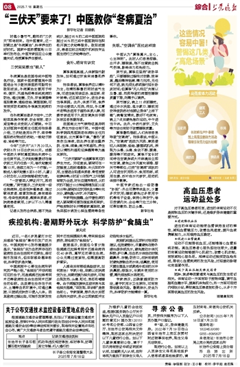 时值小暑节气,酷热的“三伏天”即将到来。在中医看来,这一时期正是“冬病夏治”、科学养生的好时机。国家中医药管理局15日举行发布会,中医专家回应公众健康关切,传授夏季养生要领。