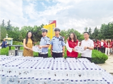 7月24日,潞州区紫金街道联合辖区3家爱心企业开展送清凉 献爱心活动。活动中,街道工作人员和爱心企业代表将500件矿泉水、6000斤西瓜等解暑物品送到交警、城管队员、社区工作者、快递员及环卫工人等一线工作者手中,为高温下的劳动者送去清凉。
