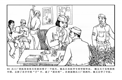 86.兵工厂的医务室里只有原田秀子一名医生,她从日本医学专科学校毕业,随丈夫于克明来到中国,去掉了名字中的“子”字,成了“原田秀”。在黄崖洞兵工厂的两年,她又自学了中医。