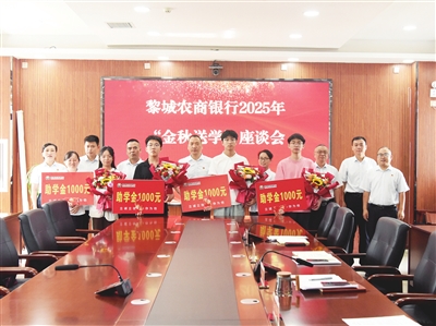 近日,我市多家农商银行组织开展“金秋送学”公益活动,为金榜题名的困难学子送去助学金及学习用品,以实际行动传递金融温度,助力学子安心求学。图为黎城农商银行工作人员为学子们发放助学金。 申林超 摄