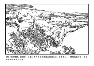 115.根据情报,目前有一小股日本特务正在黄崖山周边活动。总部指示,一定要确保兵工厂安全,准备迎接冬季反扫荡。