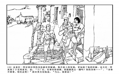 122.本来任一哲对原田秀的身份就有所疑惑,狗舌崖上的发现,更加深了他的怀疑。这天任一哲来到了于克明家里,约他出去请教问题。于克明和任一哲临出门,原田秀关切地说:“当心,别着凉。”
