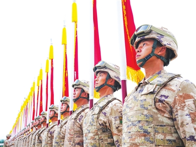 战旗猎猎,誓言铮铮。“请先烈们放心,你们用生命守护的旗帜,我们誓让它永远鲜红,你们未竟的事业,由我们来担当。”擎旗手们坚毅的目光和挺拔的身姿,成为训练场上的独特风景。