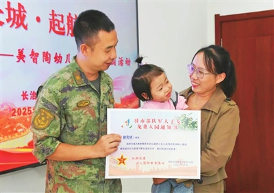 近日,美智陶幼儿园2025年驻市部队官兵子女免费入园活动在黎城县举行,几位幼儿领到了属于自己的入园通知书。这一举措切实解决了官兵困难,有力提振了军心士气,充分体现了军民鱼水深情。