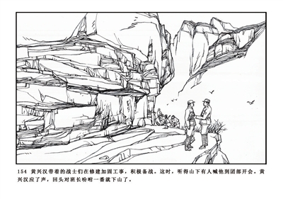 154.黄兴汉带着战士们在修建加固工事,积极备战。这时,听见山下有人喊他到团部开会。黄兴汉应了声,回头对班长吩咐一番就下山了。