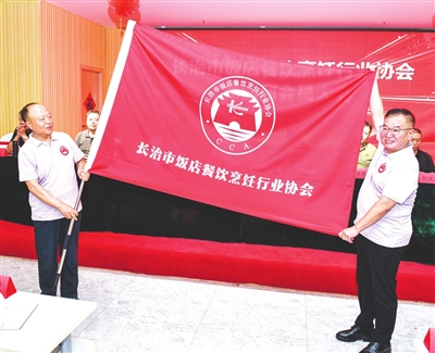 近日,长治市饭店餐饮烹饪行业协会召开第四届会员大会,选举产生了新一届协会领导班子。今后,协会将坚持“搭建平台、信息共享、依法合规、共同发展”的方针,全力打造创业发展的平台、政企沟通的桥梁、餐饮行业的家园,为我市饭店餐饮烹饪行业的繁荣发展贡献更大力量。图为会旗交接现场。