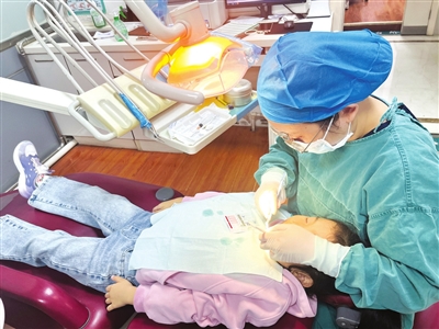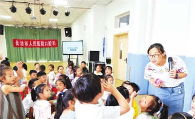 走进幼儿园,医护人员则采用生动有趣的方式向小朋友们讲解口腔健康知识。通过播放动画视频、展示牙齿模型等,让小朋友了解牙齿结构、龋齿形成过程及预防方法。郭刚说:“小朋友们对动画和模型很感兴趣,在轻松氛围中就能理解减糖对口腔健康的重要性。我们呼吁小朋友减少饮用含糖饮料,少吃糖果、甜点,多吃蔬菜水果等富含纤维的食物,既有利于牙齿自洁,又能促进口腔颌面生长发育。”