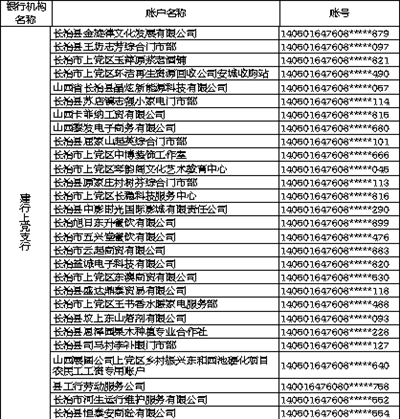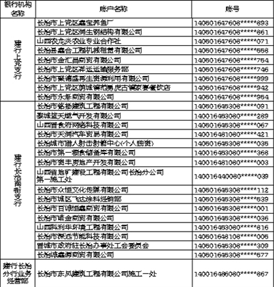 为了进一步加强单位人民币结算账户管理,提高结算账户使用率,根据《人民币银行结算账户管理办法》(〔2003〕第5号)第五十六条“银行对一年未发生收付活动且未欠开户银行债务的单位银行结算账户,应通知单位自发出通知之日起30日内办理销户手续,逾期视同自愿销户,未划转款项列入久悬未取专户管理”的规定,现对中国建设银行股份有限公司长治分行符合长期不动清理条件的账户进行公告,请以下单位自发出公告之日起30日内主动到开户银行核对账务,办理销户手续,逾期不办理销户的单位,视为自愿销户,经审批后各开户银行在人行账户管理系统中进行销户处理。