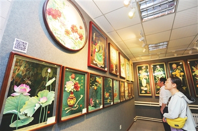 日前,游客在潞州区东狮子街长治堆锦博物馆参观游览。该馆自2014年成立以来,以陈列展览长治堆锦精品为核心,同时承担起文化研究、技艺传承的重要使命,成为展示和延续长治堆锦文化的重要窗口。