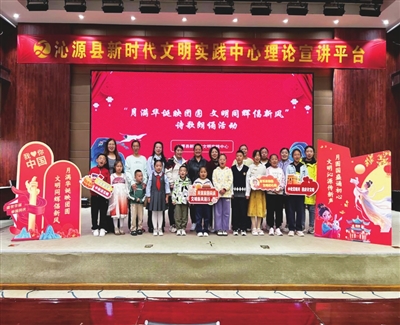 沁源县新时代文明实践中心举办的诗歌朗诵活动充满童真,来自多所小学和幼儿园的孩子们,登台朗诵《水调歌头·明月几时有》《我的祖国》等经典诗篇。当孩子们朗诵到“但愿人长久”时,老人们跟着低声应和,当大家挥动小红旗齐唱爱国歌曲,不同年龄的人因节日而相聚,因文化而共鸣,因家国情怀而同心。