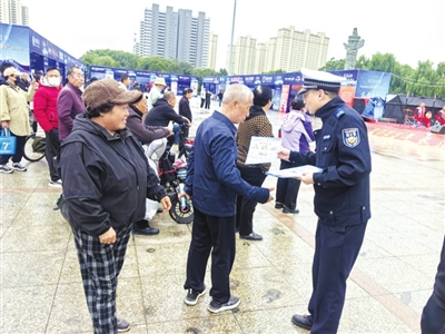 本报讯 记者王晶晶报道:10月10日,市公安局交警支队四大队民警深入城南生态苑广场“2025年长治市秋季房地产展销会”现场,开展交通安全知识宣传活动。