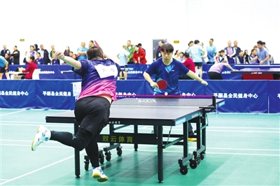 “好球!”随着一声喝彩,上海选手陆耀刚一记弧圈球划破空气,橙色小球在墨绿色球台上擦出一道残影,稳稳落在对方球台死角。刚结束混合双打对局的他,额角汗水顺着脸颊滑落,却笑着望向赛场外:“平顺刚下过雨,远山像被墨染过似的,在这儿打球,连呼吸都觉得清爽。”
