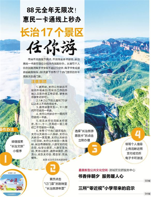 市民不用跑线下网点,不用等实体卡邮寄,长治惠民一卡通在微信小程序内就能秒办。从填写个人信息到激活电子卡全程不超过5分钟,电子卡生成后直接截图保存,88元拿下全市17个热门景区的全年无限次首道门票。