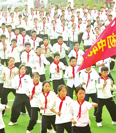 10月20日,长治二十中初一年级的学生在大课间练习武术操。近年来,该校将传统武术引进校园,开设武术课程,在丰富学生课余生活、提高身体素质的同时,让学生们体验传统武术的魅力。