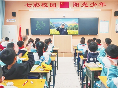 民警给同学们讲解交通安全知识。 申楠 摄
