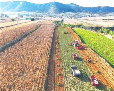 近日,潞城区辛安泉镇西坡底村的550亩柴胡迎来丰收。该村引入“玉米套种+隔年种植+年年采收”科学种植模式,通过玉米遮阴适配柴胡喜阴特性,提升土地利用率的同时带来双重收益。实现玉米保底、柴胡增效、年年收益。