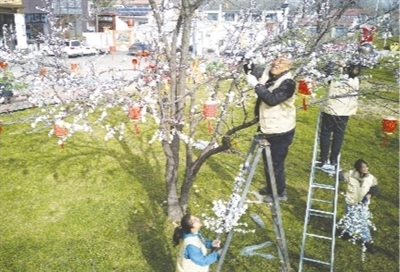 近日,长子县大堡头镇兴旺村梨园景区创新思路,为冬季枯枝悬挂红灯笼与仿真梨花,巧妙营造出“枯木逢春”的独特景观,以此提升冬季旅游吸引力,为游客带来别样体验。