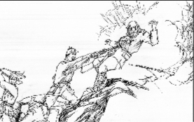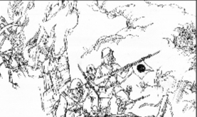 214.趁着这个空当儿,十几个鬼子冒死蹿上了石梯,有的已跳下断桥沟底,正往断桥后的石壁上攀爬。