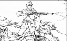 216.敌人很快冲上来。黄兴汉等敌人接近,忽然从工事里一跃而起,把最前面的一个鬼子捅倒在地,战士们也都相继跃出,冲向敌群。