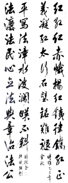 红红红,赤帜扬红,铁律镌红,正义凝红,太行石壁铭难褪; 法法法,民心立法,典章治法,公平写法,漳水波澜映不斜。