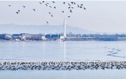 漳泽之美,夏有荷叶田田、春有樱花烂漫、秋有层林尽染、冬有群鸟嬉戏,四季皆景、四时不同,登台观望,烟波浩渺、碧水荡漾、水鸟竞飞、鱼翔浅底,不是江南胜似江南。