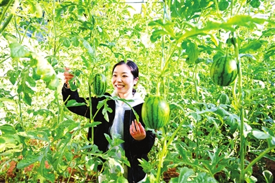 近日,上党区南宋镇永丰村现代农业公司大棚内绿意盎然,技术人员正细致查看2K小西瓜生长情况。近年来,永丰村锚定“特色兴农”,引进优质品种、推行科学管理,让“小特产”成“大产业”,带动农业提质、村民增收,为乡村振兴注入动能,蹚出产业富民新路子。