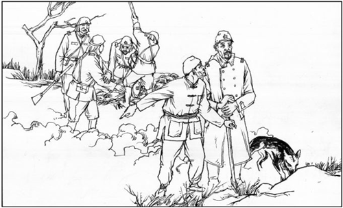 233.跟随深尾淑一进山的还有黄崖洞兵工厂小卖部的老王头。在坡底沟地有一棵倾斜的小树,老王头让士兵顺着小树的方向搜寻过去,很快就在下面挖出来一台机器,深尾淑一得意地笑了。