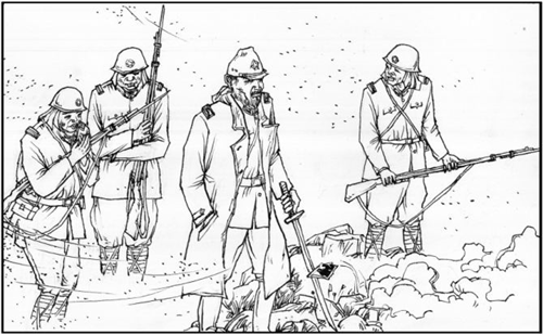 234.突然,从河谷盆地对面的山岗上射来密集的子弹,深尾淑一身旁的两名士兵倒下,他一时被吓懵了。