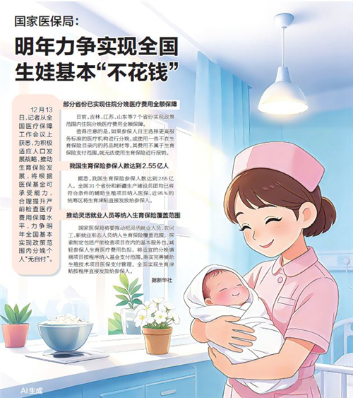 目前,吉林、江苏、山东等7个省份实现政策范围内住院分娩医疗费用全额保障。
