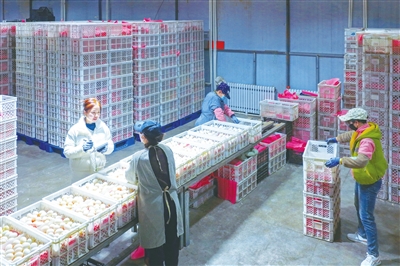 近日,黎城县山西连盛农牧业科技发展有限公司车间内,员工正忙着分拣鸭蛋种苗,一箱箱种蛋整齐码放。作为黎城旱鸭全产业链项目核心主体,该公司依托“百万旱鸭”项目,已建成两大种鸭基地,年产种蛋1.5亿枚。通过“公司+村集体+农户”模式,项目带动全县旱鸭饲养量达90万只,年产值破2亿元,既筑牢了特色农业根基,也让农户共享产业红利。 本报记者 张国平 摄