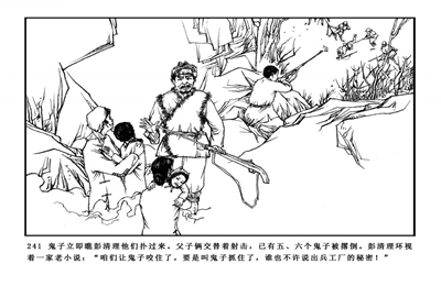 241.鬼子立即朝彭清理他们扑去。父子俩交替射击,已有五、六个鬼子被撂倒。彭清理环视着一家老小说:“咱们让鬼子咬住了。要是叫鬼子抓住,谁也不许说出兵工厂的秘密!”