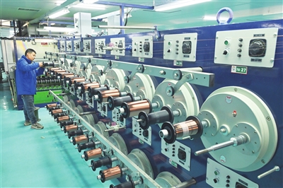日前,在长治高新技术产业开发区翟店工业园的山西潞鸿智能科技有限公司漆包线生产车间内,工作人员在进行换盘作业。该公司是一家集产品研发设计、制造、销售为一体的专业能源产品材料生产型高新科技企业,产品赢得国内外客户的认可,是华为、中兴、达威电子、龙光电子集团等企业的强力合作伙伴。 本报记者 田雨 摄