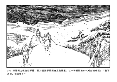 249.深尾竭力使自己平静。抬刀挑开彭清理身上的绳索,以一种洒脱的口吻对彭清理说:“我不杀你,你走吧!”
