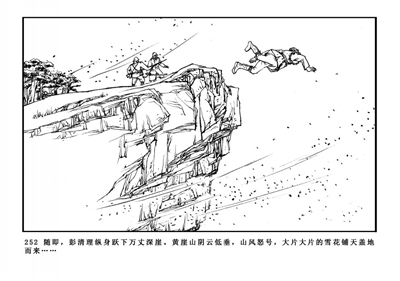 251.随即,彭清理纵身跃下万丈深崖。黄崖山阴云低垂,山风怒号,大片大片的雪花铺天盖地而来……