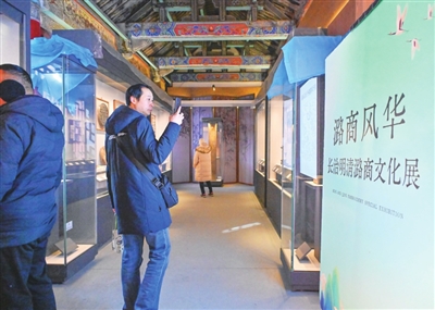 除了震撼人心的古建艺术,潞安府城隍庙精心打造的“潞商风华——长治明清潞商文化展”成为新年打卡热点。展览集中呈现了明清时期“豪商大贾甲天下”的泽潞商帮传奇,泛黄的地契见证着商贸往来的繁华,色彩浓郁的传统门板画勾勒出市井生活的鲜活,闻名遐迩的潞绸织物则尽显当年“衣被天下”的工艺巅峰。驻足展品前,游客或聆听潞商经营盐铁、丝绸贸易的创业历程,或细赏织物上的精巧纹样,在古今对话中读懂上党地区深厚的商业文明与民俗传承。