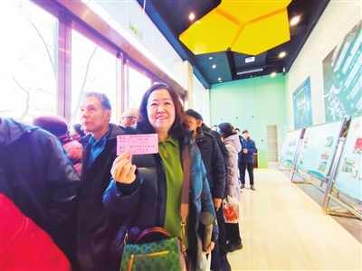 1月13日,市总工会组织开展的“光影铸魂·匠心筑梦”职工公益电影放映活动火热进行。此次活动精选红色主旋律、家庭温情、励志成长等类型优秀影片,每日分两场放映,分别为下午16∶00、晚间19∶30,每场限120人观影。图为市民展示领取的观影票。