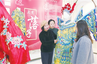 与之相映成趣的是省级非遗项目上党乐户的“老伙计”们:一本泛黄的工尺谱旁,百年前的笙与板胡静静陈列,古朴质感中深藏着乐户的唱腔记忆。一旁的潞城鼓书展区内,一副鼓板静静置于展柜,它曾敲响无数乡音故事,藏着潞城人的乡愁与记忆。
