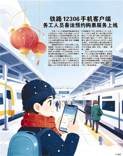 国铁集团客运中心相关负责人介绍,铁路部门在总结2025年春运务工人员预约购票工作经验的基础上,科学分析出行规律,优化铁路12306系统功能,2026年春运期间继续推出务工人员预约购票专区服务,切实保障重点群体出行。