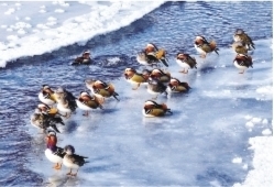 作为候鸟迁徙的重要驿站,漳泽湖湿地公园的未冻水域,成为候鸟冬日栖息的乐园。天鹅身披白羽在冰水间优雅游弋;绿头鸭成群结队在冰缝中觅食嬉戏;灰雁群时而集结湖面,时而振翅腾空,群鸟齐飞的壮观场面与冰封湖景相映成趣。候鸟对生存环境极为敏感,它们的大量聚集,正是漳泽湖湿地公园生态环境持续改善的生动书写。
