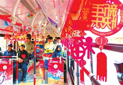 近日,潞州区乘坐公交车的市民惊喜地发现,公交公司员工用新年饰品将车辆装扮得喜气洋洋,车厢里充满温馨气息,让乘客在出行中感受浓浓的年味。