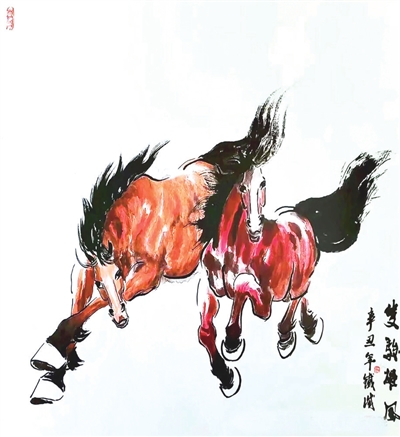 艺术之路上,谭元深受国画大师徐悲鸿影响,常年潜心临摹研习《骏马图》,深悟其笔墨精神与艺术内核,却不囿于古法、师古而不泥古,在长期探索中形成雄健洒脱、气韵生动的个人风格。其作品多次刊发于专业艺术刊物,广受书画爱好者喜爱与收藏,得到业内人士一致好评。其作品《腾飞中华》成功入选北京地铁《艺脉传承》主题巡展,亮相4号线、14号线、16号线、17号线、大兴线等多条线路,让太行深处的笔墨风骨,在首都地铁长廊中熠熠生辉。