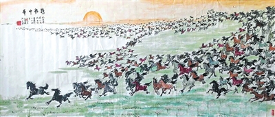 为了真正读懂马、画活马、传其神,谭元曾专程远赴内蒙古大草原,与马群朝夕相伴,沉浸式观察骏马的姿态与神韵。初到草原时,马群警觉疏离,百米之外便不肯靠近;十余日静心相守、温柔相伴,他渐渐走进马的世界,离别时已能近至两米,细致观察鬃毛飞扬、肌肉起伏、眼神灵动。那些与马朝夕相处的时光,化作笔下最鲜活的气韵,让他笔下的每一匹马,皆有风骨、有灵气。
